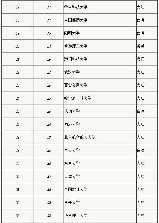 - 2017中国两岸四地大学排名发布 2017-11-23