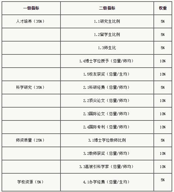 中国两岸四地大学排名的指标体系