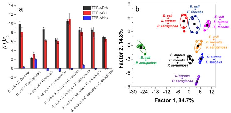 图四. TPE-ARs传感器通过LDA分析识别不同病原菌