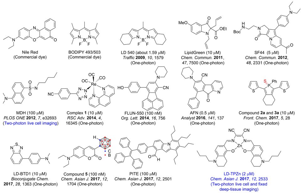 Scheme 1. 商用和文献报道的脂滴荧光探针结构