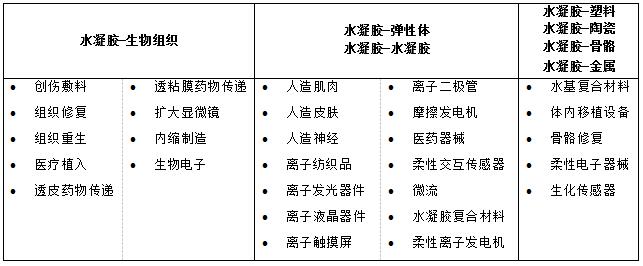 表1. 水凝胶粘接的应用