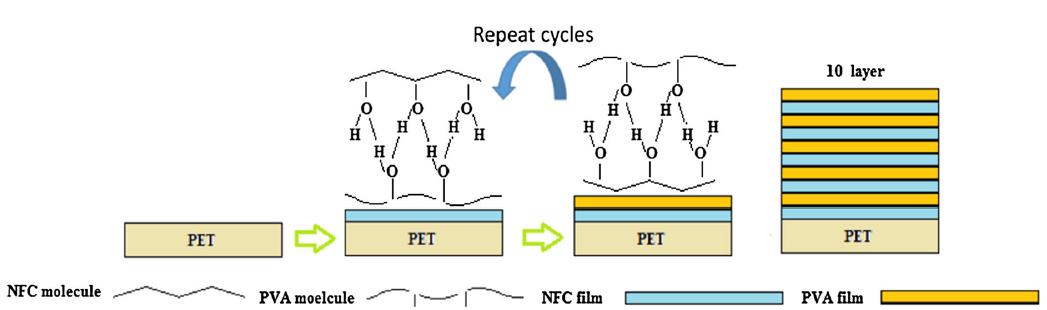 图1 PVA/NFC/PET多层膜制备示意图