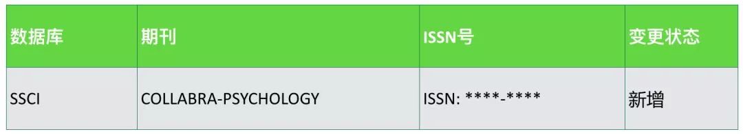 SSCI期刊数据库新增1种期刊,详见表2。当前,SSCI期刊数据库共有3409种期刊。