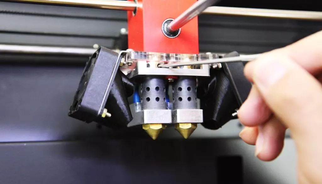 3D打印技术在多材料打印方面一直存在着一定的技术瓶颈,因此我们平时常见的挤出式3D打印机都是只有一个喷头,只能同时打印一种材料,就像下面这样。