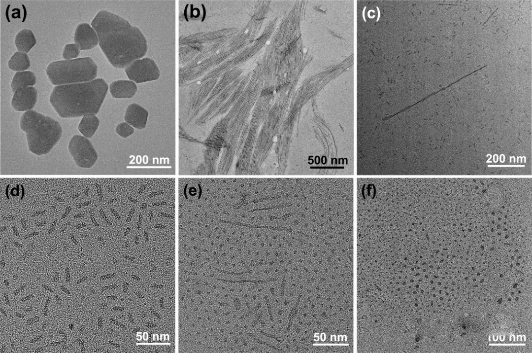 这一研究首次报道了杂臂星形共聚物能够在“非选择性或弱选择性溶剂”中自组装成胶束结构,并提出这一自组装过程和机理与通常报道的两亲性嵌段共聚物和星形共聚物在选择性溶剂中的自组装行为完全不同。作者强调:所有这些不同寻常的自组装行为和机制在常规有机星形聚合物中却从未有发现。究其原因是由于其核壳间缺乏电子密度对照,进而无法进行TEM或者SAXS形貌研究。本工作中,作者利用无机核作为TEM可视探针,建立了经典有机聚合物体系所没有的新型自组装体系。