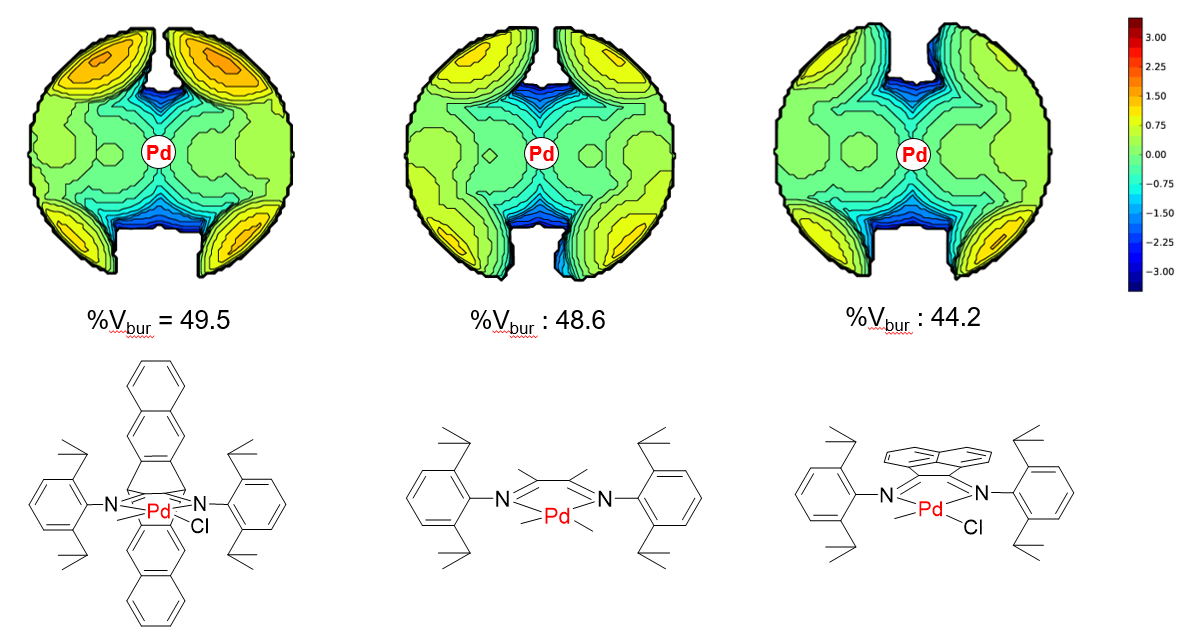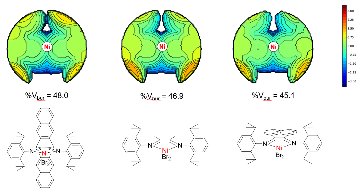 图3 不同骨架α-二亚胺镍钯催化剂的空间位阻图