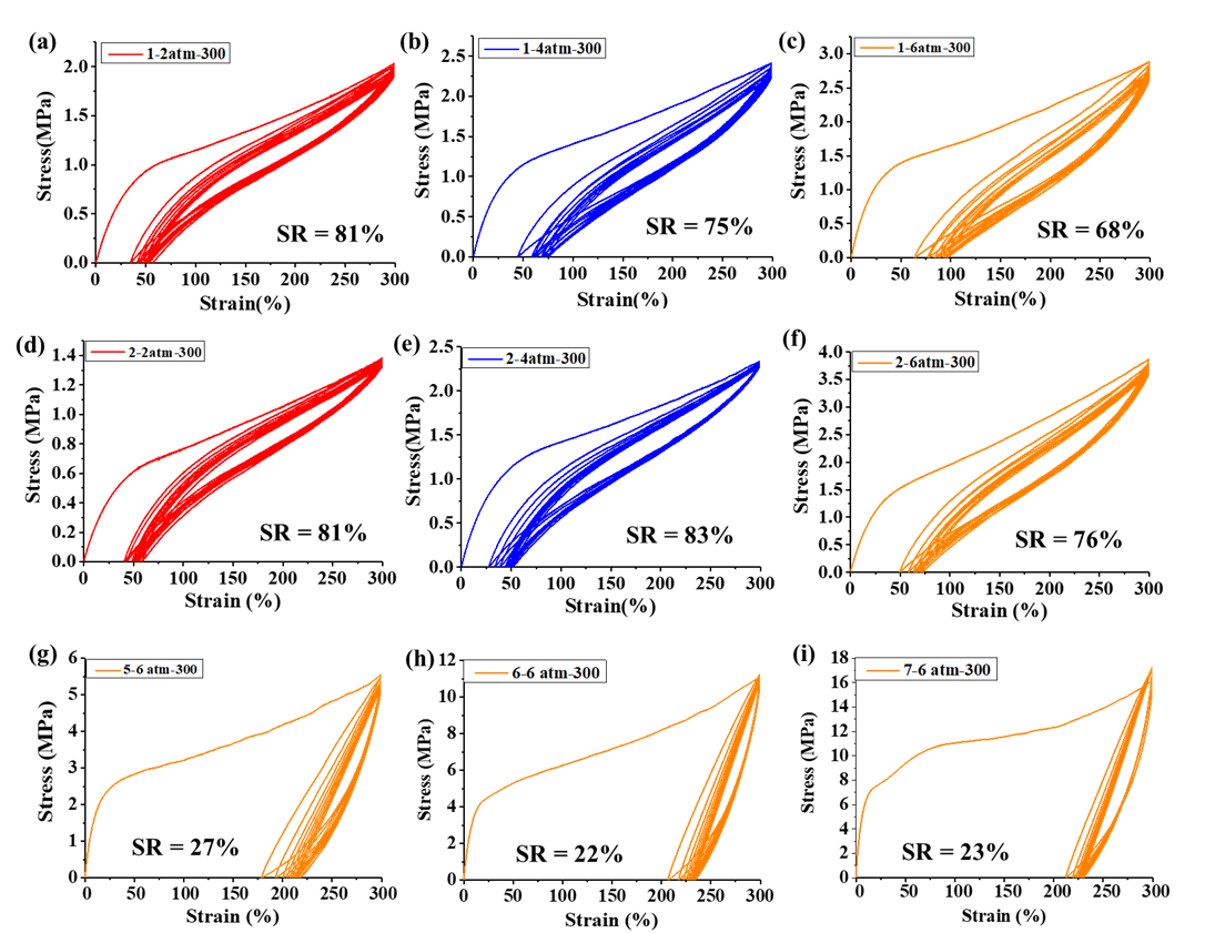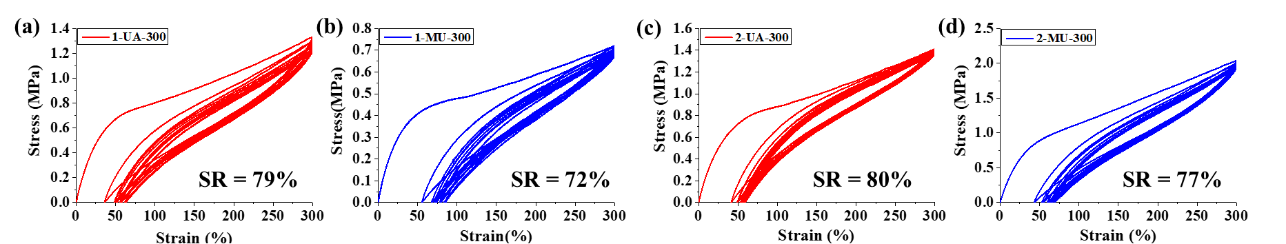 图5. 所制备极性共聚物应变滞后试验曲线图。