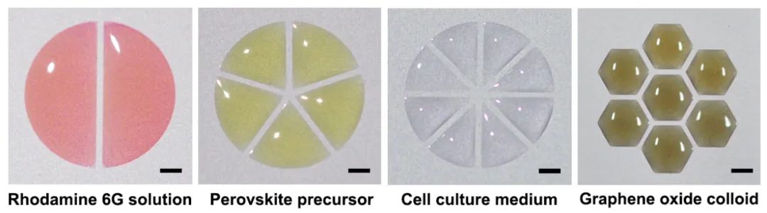 切割各种功能材料液滴形成的微液滴图案