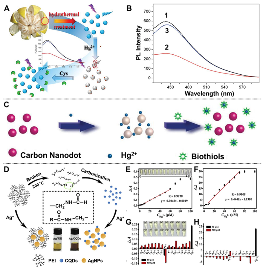 重金属离子的滥用导致的人类疾病和环境污染已成为全球公共卫生的主要问题之一。汞离子作为一种剧毒污染物,不仅会破坏人体的新陈代谢,而且会损伤中枢神经系统和免疫系统,对人类生命健康构成严重威胁。因此,以设计合成环保、高效和经济的材料为基础,开发新的方法用于检测和去除汞离子对解决汞污染问题具有重大意义。