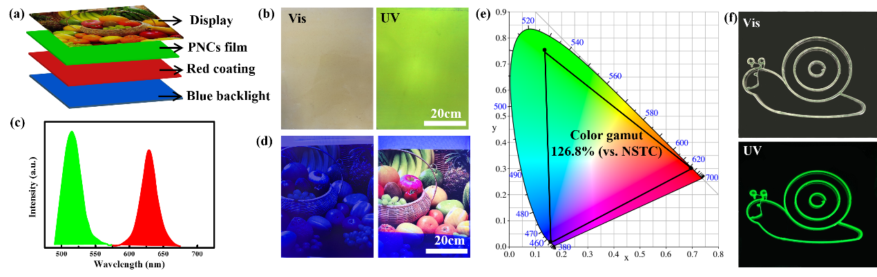 图6. PDVB@CsPbBr3@SiO2 NCCs的应用。