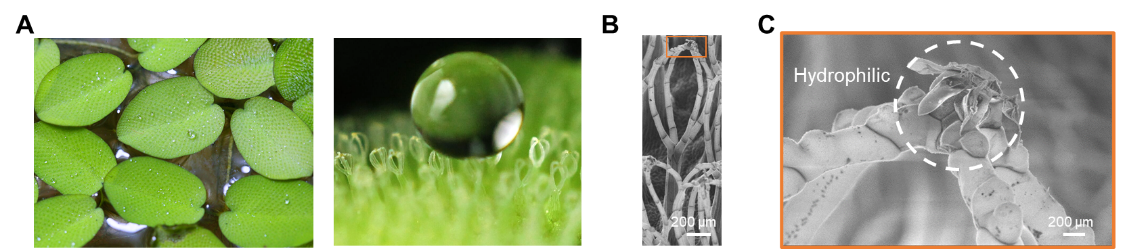 图1 槐叶萍独特的中空结构和非均质化学特性