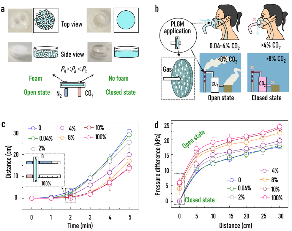 图4. 基于质子化诱导的液体门控的CO2化学响应气阀的应用