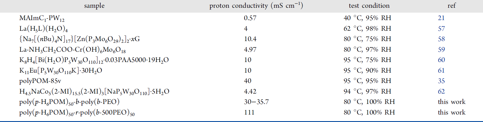 图4. CPEs与POM复合材料的质子传导率对比表格