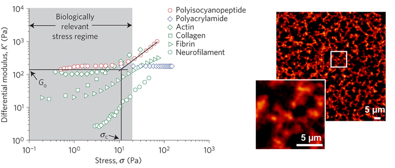 Ovijit Chaudhuri和Paul A Janmey等人于2020年在《Nature》(DOI: 10.1038/s41586-020-2612-2)上发表综述文章阐释了天然ECM同时具有的多种复杂力学性质,包括非线性力学性质/应力刚化力学性质(nonlinear mechanics/strain-stiffening)、粘弹性/应力松弛(viscoelasticity/stress relaxation)以及力学可塑性(plasticity)等等,并且讨论了这些动态力学性质在调控细胞行为方面的功能以及在组织工程中的应用,对仿生材料的设计方向进行了展望。