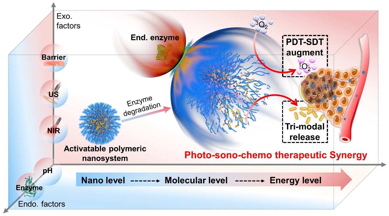 Pu Qiu, Mengmeng Huang, Shiwen Wu, Mei Wen, Nuo Yu*, and Zhigang Chen* Dynamic Effects of Endo-Exogenous Stimulations on Enzyme-Activatable Polymeric Nanosystems with Photo-Sono-Chemo Synergy. ACS Appl. Mater. Interfaces 2022, DOI: 10.1021/acsami.2c05276.