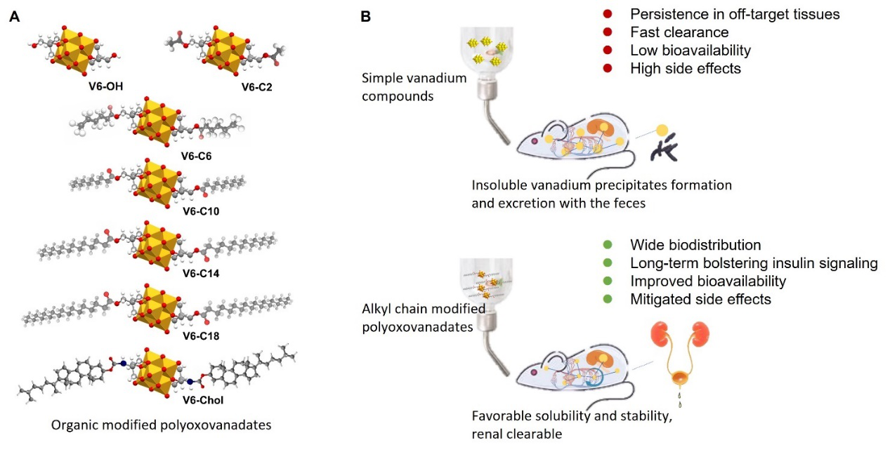 图1 亚纳米尺度钒簇表面性质的调节策略以及相应的生物利用和胰岛素增敏的提高效果