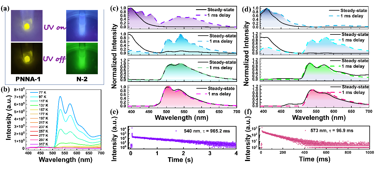图4. 分子在粉末基质(PNCz)中的磷光性质表征