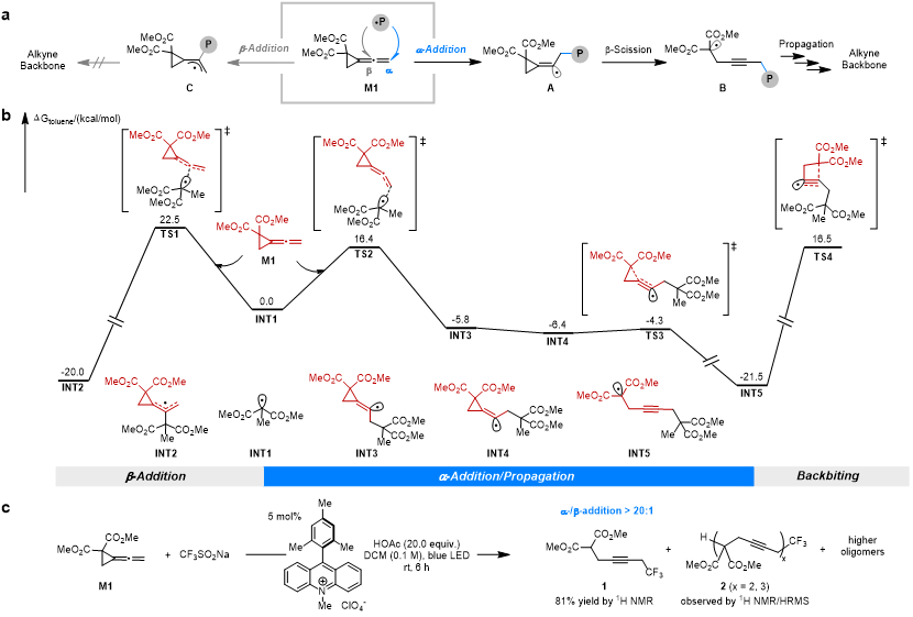 图2 DFT计算VDCP自由基聚合路径及模型反应展示α-加成选择性.