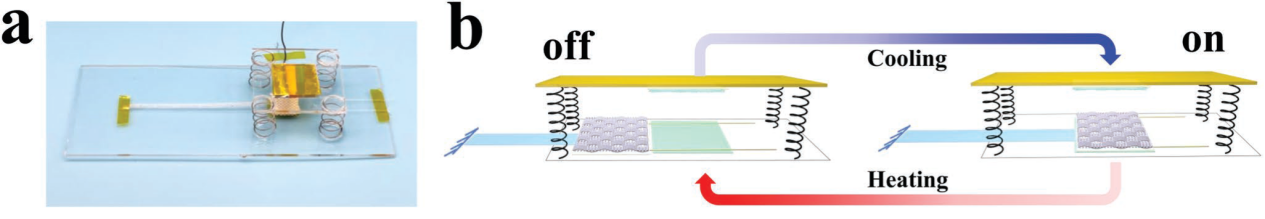 近日,天津工业大学杨光教授、闫静副教授、庄旭品教授设计了一种由双向形状记忆聚氨酯(PU)驱动的可移动摩擦电层,进而开发出具有热触发可“开-关”功能和高摩擦电输出的智能TENG。该TENG器件可以根据环境温度变化自发打开/关闭工作模式,即在0 °C时打开,在60 °C时完全关闭。在工作状态,TENG最大输出功率密度达到了5.15 W m?2。智能“开-关”和高输出功率使得智能TENG可作为传感元件和热驱动开关在可穿戴电子系统中的应用,该系统不仅可以监测寒冷环境中的人身体状况,还可以根据TENG的热响应特性实现按需加热,为开发下一代智能可穿戴电子产品开辟了新的选择。