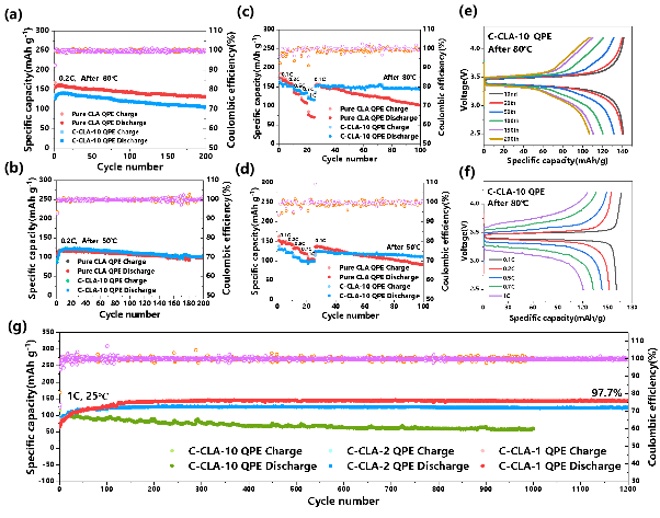 图3. 基于CLA based QPE的Li+传输特性和电化学性能。
