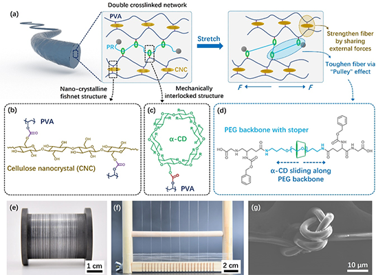 同时,所获得的人造纤维材料还具有类似于蜘蛛丝的抗冲击以及形状记忆等特性,并可用于对高分子复合材料的力学增强中,极大提高复合材料的抗疲劳性能。该工作以“Biomimetic Super tough, Strong and Ductile Artificial Polymer Fiber based on Immovable and Slidable Crosslinks”为题发表在《Nano Letters》上。南开大学硕士生孔振和中科大研究生侯远震为共同一作。该研究得到国家自然科学基金委的支持。该工作也是梁嘉杰团队近期在高分子纳米复合材料增强增韧方向(Adv. Mater. 2023, 35, 2209527)的延续性工作。