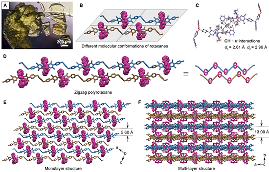 机械互锁分子(MIMs)是指两个或两个以上的分子通过机械键在空间上相互缠结在一起而形成的拓扑结构,比如最具代表性的轮烷和索烃。通常来说MIMs展现出较高的构像自由度和分子内运动。将MIMs集成到纯有机聚合物晶体中预期将得到一类具有独特性能的新材料。然而,截至目前这种思路被证明通过传统方法是难以实现的,因为MIMs的内部运动会对有机聚合物的结晶造成明显的干扰。因此,实现MIMs在纯有机聚合物中高度有序集成也成为超分子化学领域的重要挑战之一。