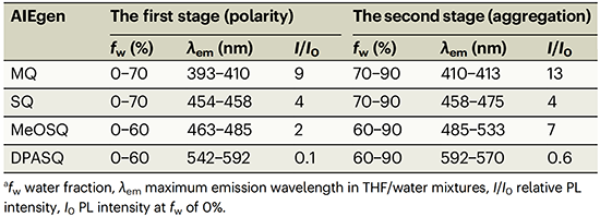 表1 四个分子在四氢呋喃和水的混合溶液中的光物理性质比较