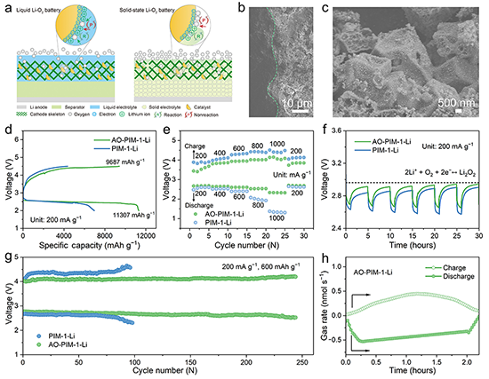 图4 基于PIMs固态电解质的固态锂空气电池的电化学性能和可逆性