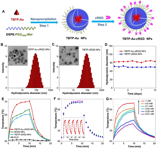 图3 TBTP-Au-cRGD NPs的制备及光热转换效率表征