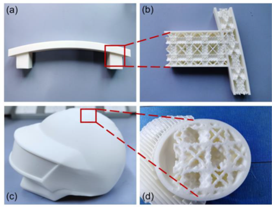 负泊松比(NPR)材料是一种新型超力学材料,又称拉胀材料。当NPR材料被轴向压缩或拉伸时,它们将反常地径向收缩或膨胀。这种独特形变模式使NPR材料具有优异的抗压痕能力、抗剪切能力和能量吸收能力。主流NPR结构主要有内凹多面体结构、手性NPR结构、旋转多边形结构和折剪纸堆积结构。具有负泊松比(NPR)的中空超材料由于其膨胀特性而具有优异的轻质力学性能。设计可以免支撑3D打印的三维NPR结构是容易制造NPR超材料并有效提高性能的最佳方法之一。然而,现有的免支撑打印三位NPR结构空间对称性不佳,其在不同维度的非均一增强限制了它们的应用,如需全方位保护的头盔等安全防护应用。