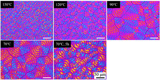 图2 三嵌段共聚物PA6-PCL-1:6.2经过不同温度等温后的POM形貌。