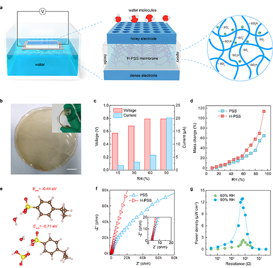 - 香港理工大学陶肖明教授团队 Nat. Commun.:基于超分子水凝胶的绿色湿气发电机,输出电流可达65 mA 2024-04-22