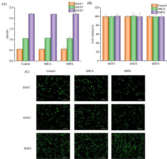 图4. PVA-MICA膜与PVA-MIPA膜的生物相容性