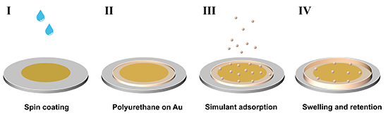 图3 用QCM-D表征模拟剂在PU薄膜上的吸附行为的过程