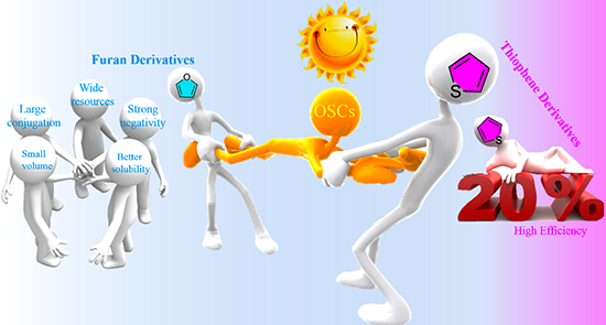 图1. OSCs中呋喃类光电材料与噻吩类光电材料的示意图