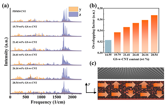 图7.不同GS含量对CNT面内和面外声子振动功率谱的影响。