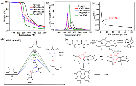 图5 PUA原位催化CPVC交联成碳机理