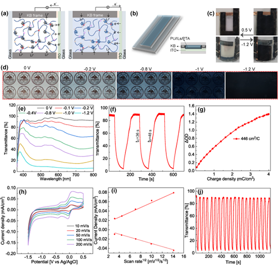 图2. PU/ILS/PTA离子凝胶电致变色表征