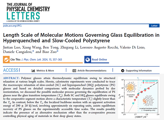 玻璃态高分子是典型的非平衡态体系,具有较平衡晶体更疏松的分子堆砌结构和更高的吉布斯自由能。玻璃体系通过缓慢的结构弛豫而趋近其热力学平衡态 — 即平衡恢复(equilibrium recovery)。这个过程也称为物理老化(physical aging),结果使材料密度增大、韧性和延展性降低,是造成高分子材料结构失稳的关键因素。揭示玻璃态高分子平衡恢复的分子机制对于高性能高分子材料的设计及制备具有重要意义。经过几十年努力,学界已经建立起了描述玻璃体系物理老化的唯象模型,例如Tool-Narayanaswamy-Moynihan模型和Kovacs-Aklonis-Hutchinson-Ramos模型;然而其平衡恢复的微观机制尚未明晰,学术界仍存争议。