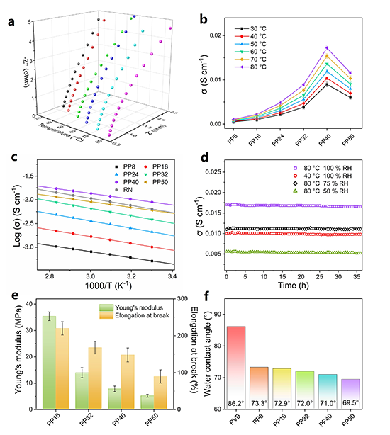 图3. 复合膜的电化学性能、机械性能和表面特性