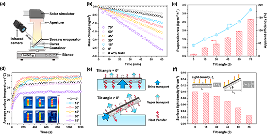 综上所述,SIEPM团队设计了一种两面神光热跷跷板蒸发器,能实现高浓盐水中高效、长期且稳定的蒸发。独特的跷跷板构型不仅使其能够利用盐垢驱动翻转,实现除垢,保持蒸发的稳定性,也能优化蒸发器的热管理以及蒸发过程,提升其蒸发效率。该工作为光热蒸发器的设计以及克服蒸发过程中的盐垢问题提供新的思路。