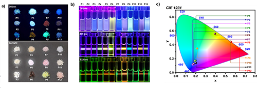 图3. 共聚物固体及溶液的照片和CIE图