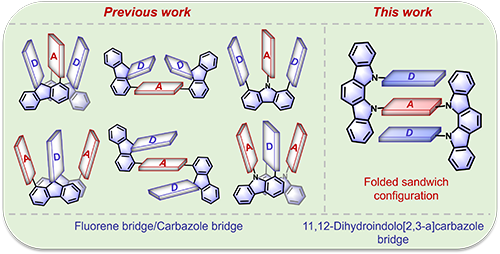 图1. 已报道的三明治构型TADF分子和本文报道的新型三明治构型TADF分子