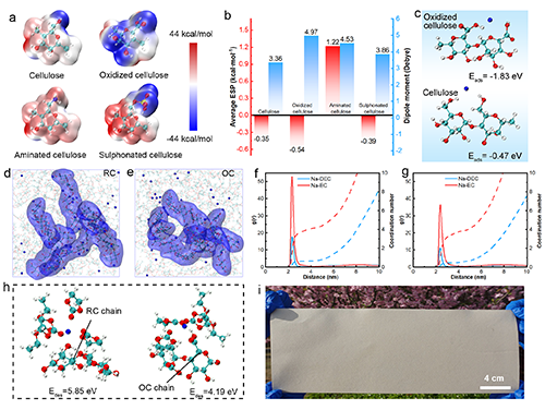 基于此,东华大学朱美芳院士/徐桂银教授团队开发了一种高偶极矩的羧基官能化纤维素隔膜,该隔膜可大规模制备并应用。该工作以“Simultaneous Regulation of Organic and Inorganic Components in Interphase by Fiber Separator for High-stable Sodium Metal Batteries”为题发表在Angewandte Chemie International Edition期刊上。
