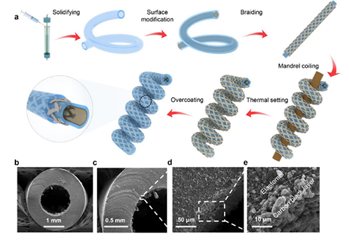 近年来,开发同时具备响应速度快、绝对输出功大的纤维人工肌肉对其在柔性可穿戴外骨骼等领域中的应用具有重要意义。加捻卷绕型人工肌肉具有媲美自然肌肉的性能而被广泛研究。然而由于加捻纤维的捻度从表面到其中心逐渐递减,处于中心部分的纤维对人工肌肉驱动性能的贡献甚微,这意味着在纤维中心的输入能量没有得到有效利用。有研究通过鞘-芯结构、中空结构来解决响应速度和能量效率问题。然而,这种中空结构需要较厚的壁厚来避免扭转引起的管塌陷,这增加了肌肉重量,减少了输出功。