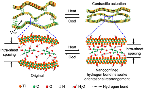 图1:MXene复合纤维人工肌肉收缩驱动的机理图