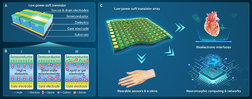 图1. 低功耗有机软体晶体管的介电工程架构策略及新兴电子应用