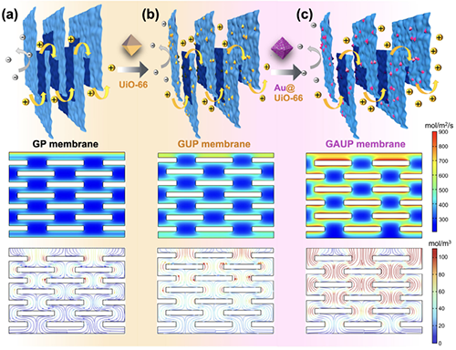 图1离子聚合物和Au@UiO-66-NH2协同增强GO膜及其结构表征