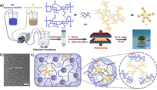 图2 TA-MC水塑料制备过程及动态纳米限域结构示意图。