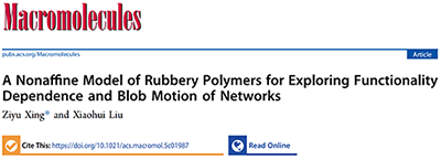 该工作以“A nonaffine model of rubbery polymers for exploring functionality dependence and blob motion of networks”为题发表在Macromolecules上。文章第一作者和通讯作者是湘潭大学讲师邢子彧博士。该研究得到大连长丰实业公司的刘晓晖技术员的硬件支持。